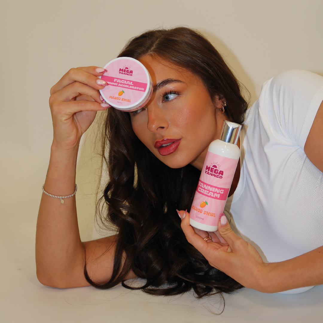 Perfect for regular tanners or anyone building a complete tanning routine, the Mango Swirl Duo delivers head-to-toe tanning care with a luxurious tropical finish.