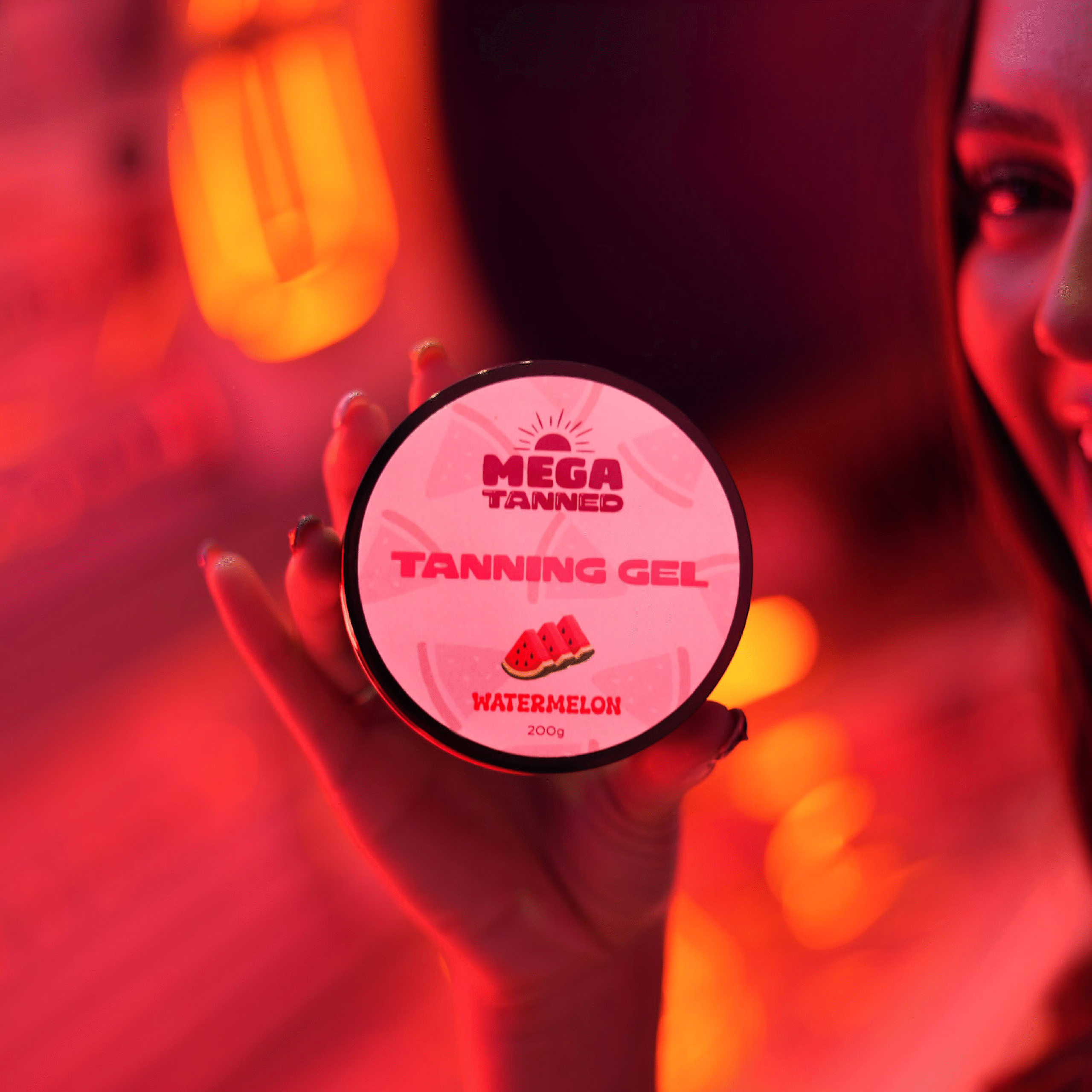 Mega Tanned Watermelon Tanning Gel is a fast-acting, skin-conditioning formula designed to enhance and accelerate your natural tanning process. Infused with hydrating and nourishing ingredients, our gel helps stimulate melanin production, allowing you to achieve a deeper, longer-lasting tan. Whether you’re sunbathing or using a sunbed, Mega Tanned Tanning Gel helps you get the most out of your tanning sessions.